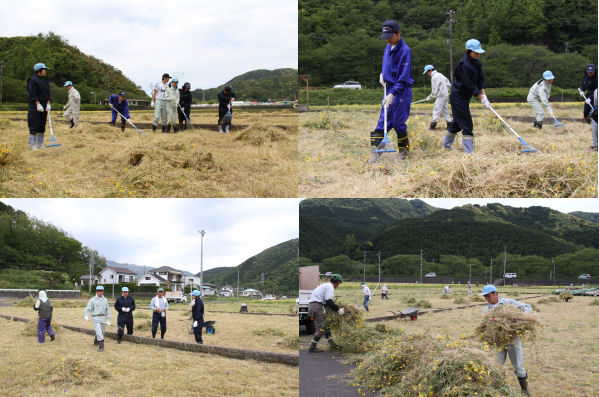 - 花畑の刈取り作業は、特別支援学校伊豆松崎分校の生徒にも協力していただきました。花の刈取り作業は明日まで行われる予定です。