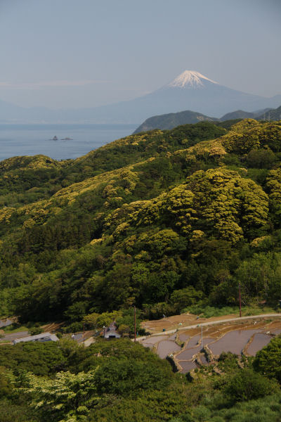 - 石部棚田上の展望台からの富士山の眺めです。今日は天候も良く、裾野まできれいに見ることができました。