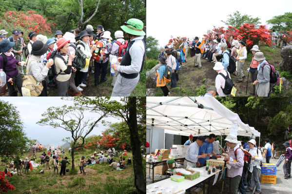 - 雲見の高通山では、つつじまつりが開催されました。イベント会場では、地場産品などが当たる抽選会やところてんなどのサービスコーナーが設けられ、山頂ではオリーブ茶や甘夏が振る舞われました。