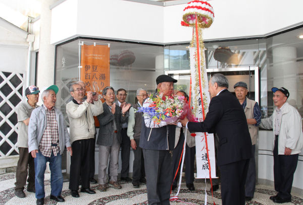 - 伊豆の長八美術館では、入館者が400万人を達成し、お祝いのセレモニーが行われました。記念すべき400万人目の来館者には、町長から花束などが渡されました。
