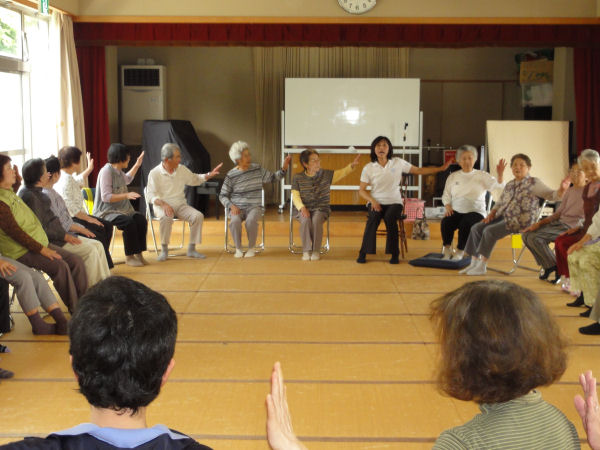 - 福祉センターでは、音楽に合わせた運動で、楽しく筋力アップ・バランス能力アップを目指す、いきいき貯筋倶楽部が行われました。
