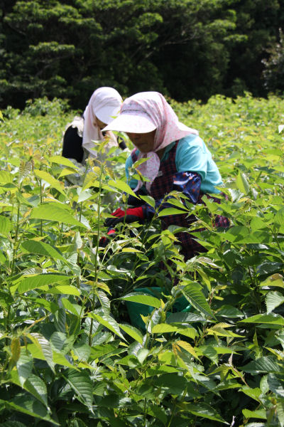 - 町内の桜葉畑では、青々とした葉が茂り、収穫の時を迎えています。