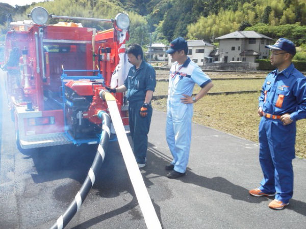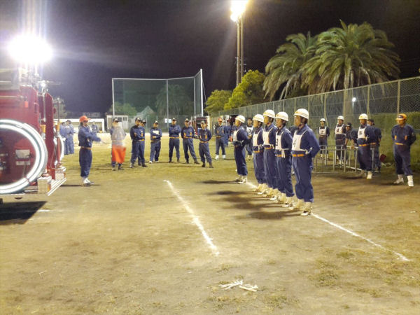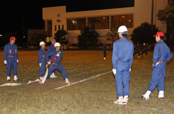 - 昨夜の話題ですが、松崎町と西伊豆町の消防団が操法大会に向けた合同訓練を行いました。各団とも指導員のもと、熱心に訓練に取り組みました。