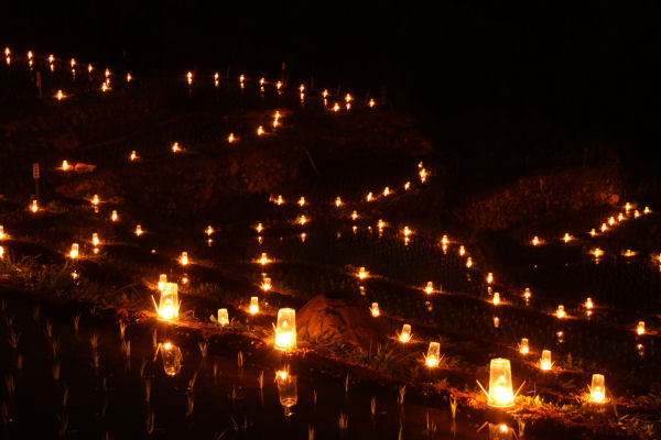 - 昨夜石部棚田で行われたキャンドルイベント「石部の灯り」の様子です。今夜も開催されますので、ぜひお立ち寄りください。お車は、旧三浦小学校グラウンドに駐車し、棚田内への送迎車をご利用いただくか、棚田上の駐車場に停めていただき、徒歩でご来場ください。