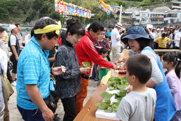 - 岩地海岸では「岩地大漁まつり」が開催されました。かつてかつおの遠洋漁業が盛んだった岩地地区の歴史にちなみ、漁船による湾内パレードやかつおをつかったニアイナマスという郷土料理などが振る舞われ、多くの来場者で賑わいました。