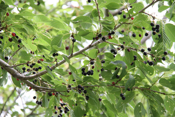 - 那賀川沿いなどでは、春に花を楽しませてくれたサクラに、青々とした葉が生い茂り、サクランボもたくさん付いていました。