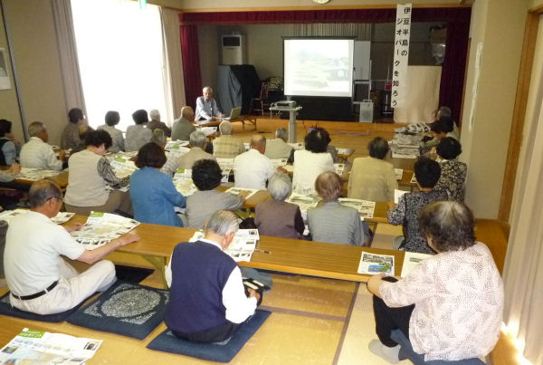 - 福祉センターでは、寿大学の開講式が行われました。今日は「伊豆半島のジオパークを知ろう!」と題し、伊豆ジオガイド協会の渡辺攻氏の講義を受けました。