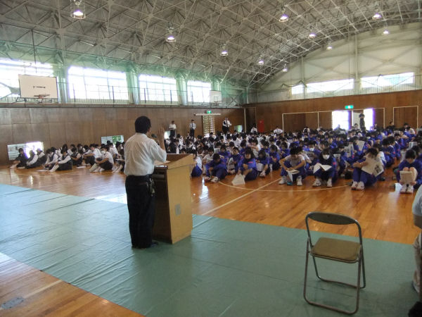 - 松崎中学校体育館では、松崎中学校の生徒と松崎高校の一年生を対象に、ボランティア活動に対するオリエンテーションが開催されました。