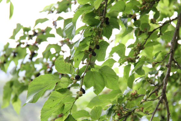 - 町内の各所で、桑の木が赤紫色の実をたくさん付けています。