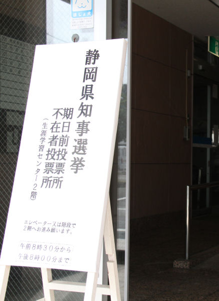 - 静岡県知事選挙の期日前投票が始まりました。場所は、生涯学習センター2階の小会議室です。6月16日の投票日に投票できない方は、期日前投票をご利用ください。