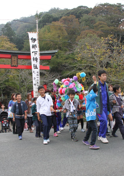 - 三省社(松崎地区)では、伊那下神社から子供神輿が出発し、地区内を巡りました。