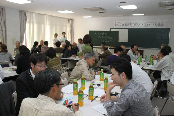 - 環境センターでは、まつざき温泉熱利用プロジェクトの第1回勉強会が開催され、地熱エネルギーや温泉熱利用についての講演やワークショップを行いました。