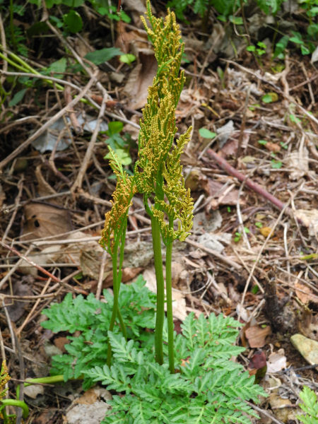 - 山では、金色の粒をつけたフユノハナワラビが咲いています。