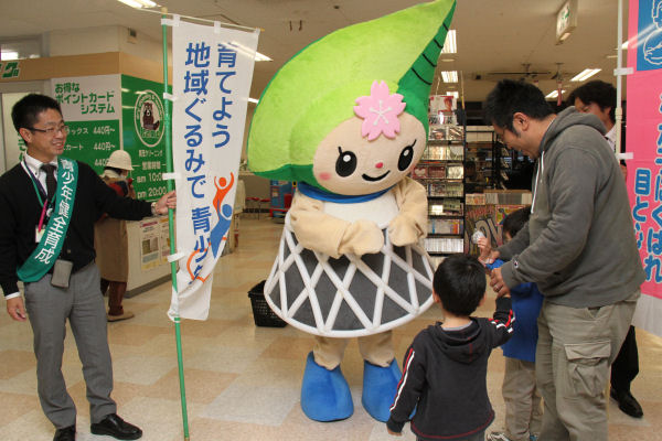 - 松崎町青少年問題協議会では、マックスバリュ松崎店にてチラシなどを配りキャンペーンを行いました。松崎町マスコットキャラクターの「まっちー」もキャンペーンに参加しました。