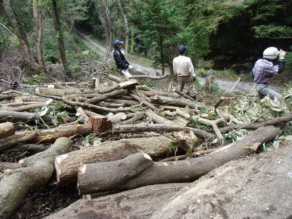 - 昨日の話題ですが、八木山炭焼き有志の会ではこの秋の活動が始まり、原料木の玉切りと木落しを行いました。11月23日の炭出しに向けて作業を続けます。