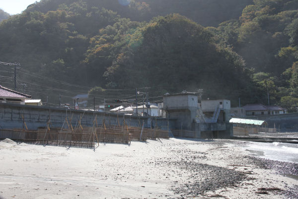 - 冬の西風に備え、石部海岸には、飛砂防止の浜囲いが設置されていました。