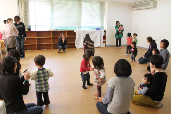 - 児童館では、すくすく広場が行われ、参加者はリズムに合わせて楽しそうに体を動かしていました。
