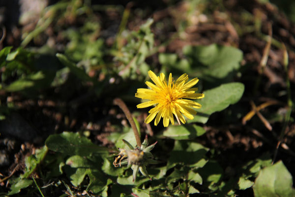 - 寒い日が続いていますが、陽だまりでは、タンポポの花が咲いていました。