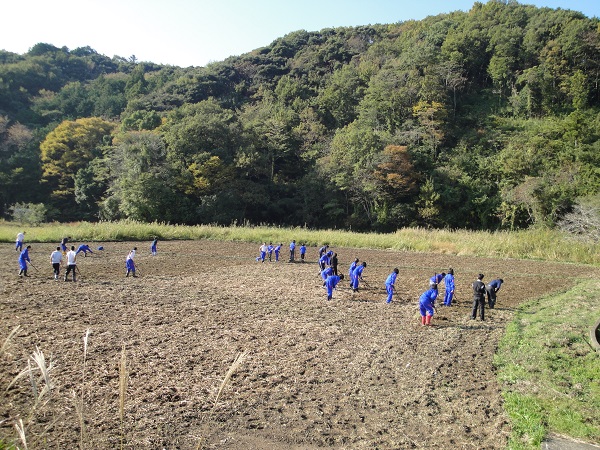- 南郷鮎川地区の休耕田では、松崎中学校ホタル保護ボランティアのメンバーにより、菜の花の種まきが行われました。