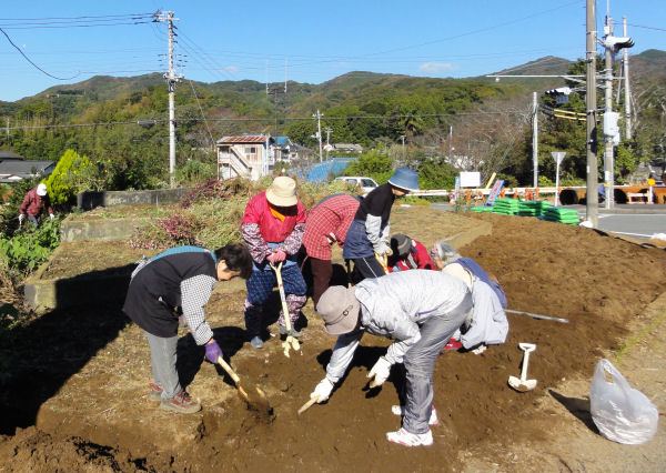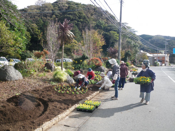 - 道の駅「花の三聖苑」では、三聖苑花クラブによる花植え作業が行われました。