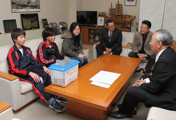- 昨日の話題ですが、先月行われた海賊料理まつりで、東日本大震災の復興支援のために雲見子供会が募った義援金、雲見観光協会から伊豆大島への義援金が届けられました。
