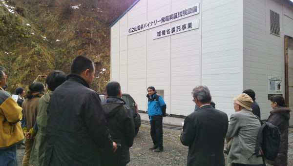 - まつざき温泉熱利用プロジェクトでは、昨日から1泊2日で、新潟県十日町市での地熱発電施設見学などが行われています。写真は、温泉を利用したバイナリ発電を視察している様子です。