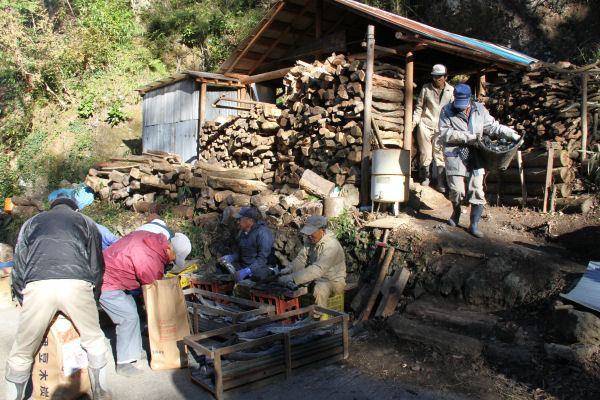 - 2週間前から原料木の玉切りなどを行い準備を進めてきた八木山炭焼き有志の会では、今シーズン初めての炭出し作業が行われ、約500㎏の炭が完成しました。