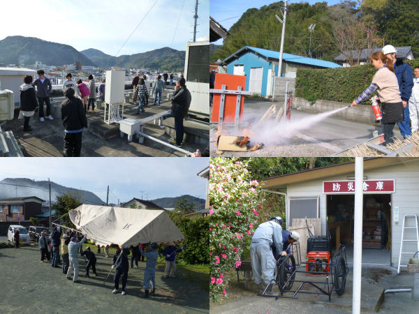 - 町内各地区では地域防災訓練が実施され、消防団や地区役員の指導のもと、消火訓練、避難訓練、テント設営訓練が行われたほか、地区保管の防災器具の点検なども行われました。