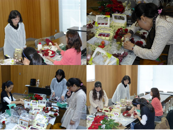 - 昨日の話題ですが、松崎町生涯学習塾として3つの教室が開催されました。写真は「はじめてのアーティフィシャルフラワー教室」の様子です。参加者は本物そっくりのアーティフィシャルフラワー(造花)を使ってクリスマスリースを製作しました。