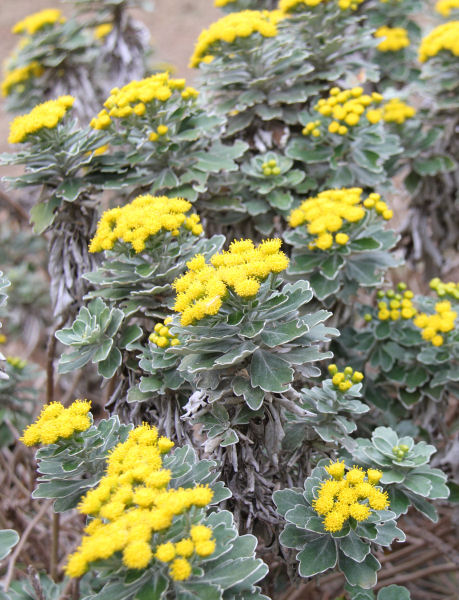 - 海岸沿いで、イソギクの花がきれいに咲いていました。