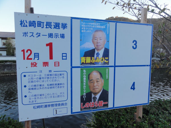 - 松崎町長選挙の告示が行われました。投票日は、12月1日です。期日前投票は明日から11月30日までです。