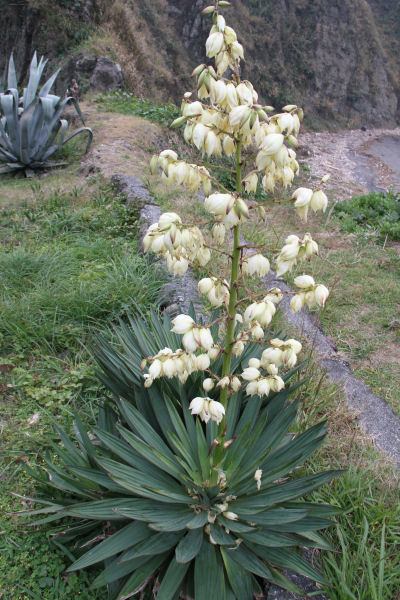 - 国道沿いでは、アツバキミガヨランの白い花がきれいに咲いていました。