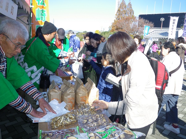 - 駅伝大会のゴールとなる草薙陸上競技場は、県下市町の物産直売で賑わいました。松崎町のブースでは、シイタケ製品やわさび漬け等ほとんどの品物が売切れました。