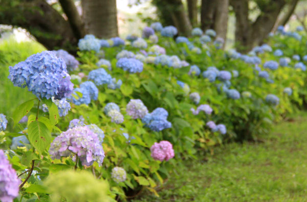 - 昨日の写真ですが、牛原山のアジサイの様子です。全体的に色づき始めていますが、満開となるまではもう少し時間がかかりそうです。