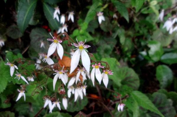 - 木陰では、ユキノシタがひっそりと咲いていました。