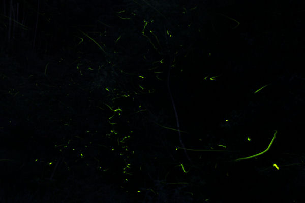 - 昨夜の写真ですが、岩地ではホタルが見ごろを迎えています。木々の間を約100匹ほどのホタルが高く飛び交い、訪れる人々を楽しませています。