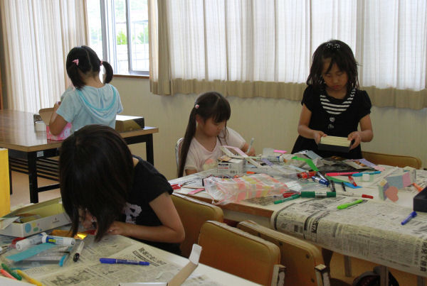 - 児童館では、父の日を前にプレゼントづくりが行われました。参加した子どもたちは、「お父さん、いつもありがとう」と感謝の気持ちを込めて、プラバンキーホルダーとびっくり箱を作りました。