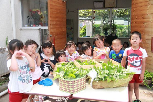 - 開拓姉妹都市の北海道帯広市から、初夏の北海道を代表する花の一つであるスズランが届きました。自然豊かな帯広に残されたスズランの群生地から市役所職員の方々が摘み取って送ってくださいました。いただいたスズランは、町内の幼稚園、保育園、小学校、中学校等に配られ