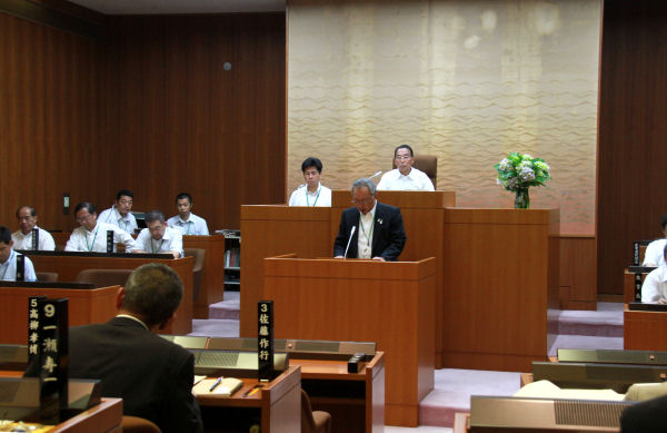 - 役場議場では、松崎町議会第2回定例会が開催されました。今日は、行政報告や一般質問が行われました。
