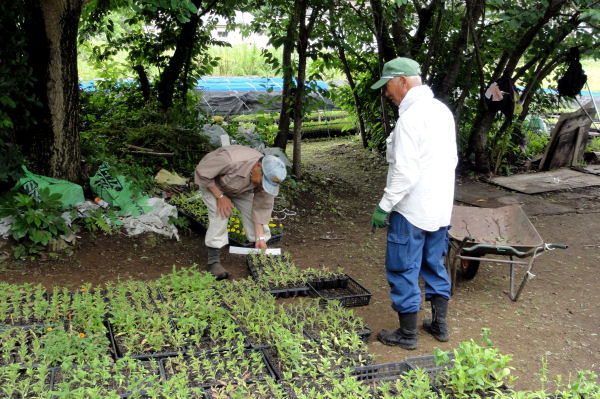 - 宮内区にある苗畑では、成長した苗を町内の花壇管理団体に配布するため、苗の仕分け作業が行われました。