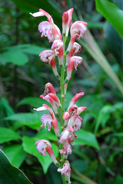 - 町内の山間部では、木陰でハナミョウガの花がひっそりと咲いていました。
