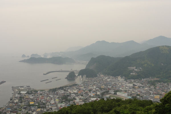 - 今日の松崎は、1日を通して厚い雲に覆われた天気となりました。牛原山から見下ろすと、松崎の町並みが霞がかって見えました。