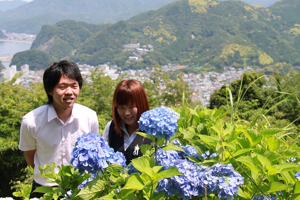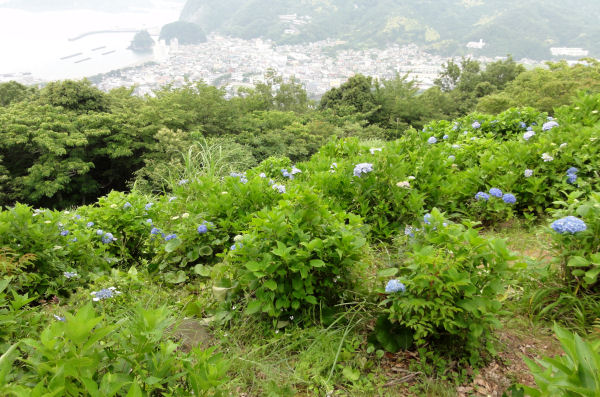 - 「世界の中心で、愛をさけぶ」のロケ地となった牛原山のアジサイの丘では、青色に色付いたアジサイが見ごろを迎えています。