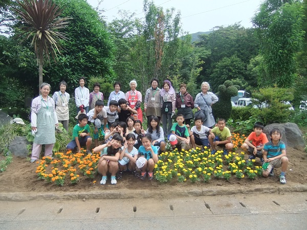 - 平成26年度三聖塾の第1回目の活動として、「道の駅」花の三聖苑で花植えボランティアが行われました。参加した塾生17人は、日ごろ三聖苑の花壇の管理をしている「三聖苑花クラブ」の皆様に教わりながら、サルビアやマリーゴールドなどの花を植えました。