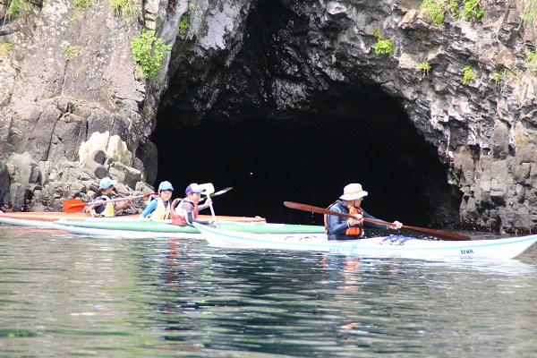 - 今日の海洋クラブは、洞窟探検などをしながら萩谷海岸まで行きました。 団員たちは、海上から見る自然の雄大さを実感していました。