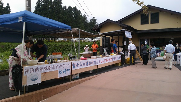 - 昨日、世界でいちばん富士山がきれいに見える町実行委員会が、富士宮の市民団体と一緒に白糸の滝で松崎町を宣伝しました。