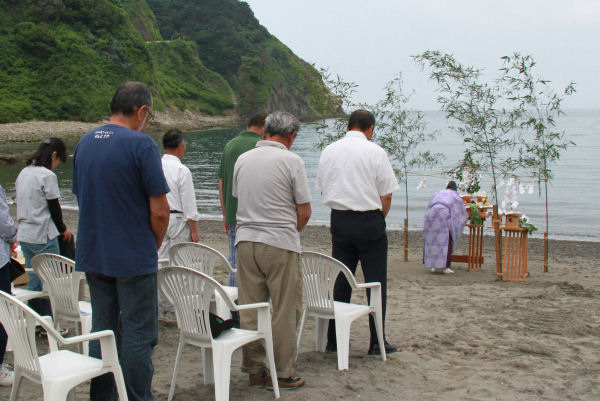 - 石部海岸では、海上安全祈願式が行われ、これから始まる夏の期間中の海の安全を願う神事が行われました。