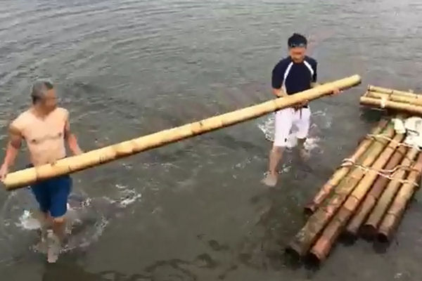 - 昨日の話題ですが、松崎海岸では、ポートクラブが夏の海水浴期間中に設置していた竹の筏の片付け作業を行っていました。