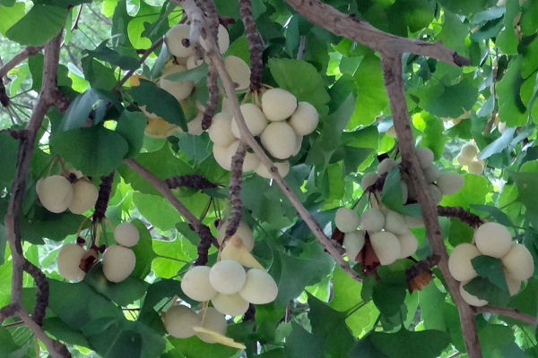 - 町内の伊那下神社では、イチョウの木が実を付けていました。