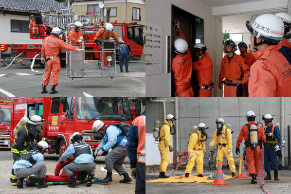 - 町内の宿泊施設にて、下田消防署と西伊豆消防署による警防訓練が実施され、はしご車による救出救助訓練や停電時を想定したエレベーター対応訓練等が行われました。